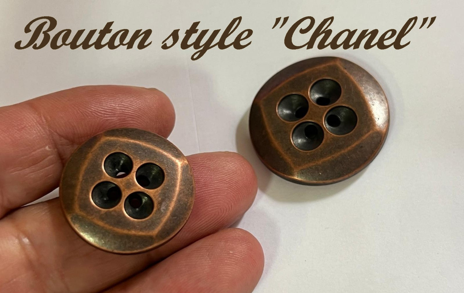 25mm Bronze 'CHANEL' Style Button to Enhance Your Haute Couture Creations. Item sold individually. Perfect for enhancing jackets, blouses, or haute couture creations.