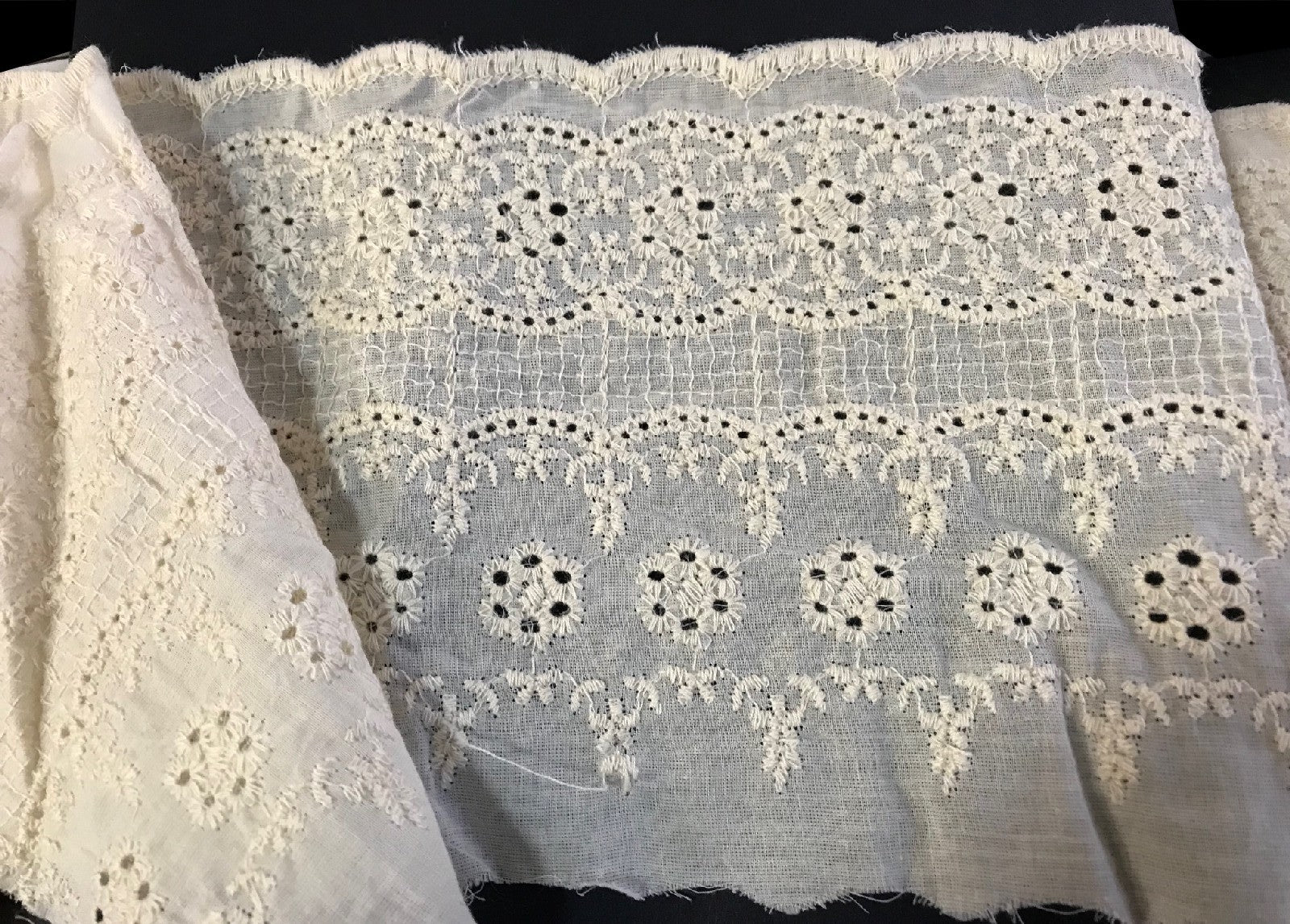 Discover our 14cm ecru English Cotton Embroidery by the Meter, a must-have in our haberdashery. Ideal for enhancing all your creations. Available in stock, sold by the meter or piece depending on the type of product.