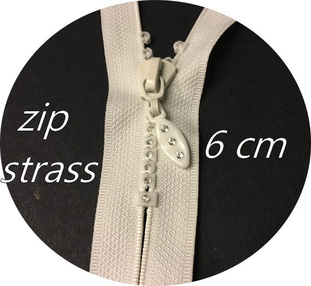 6 cm Ecru Rhinestone Zip Fasteners, Non-Openable, To Sew.