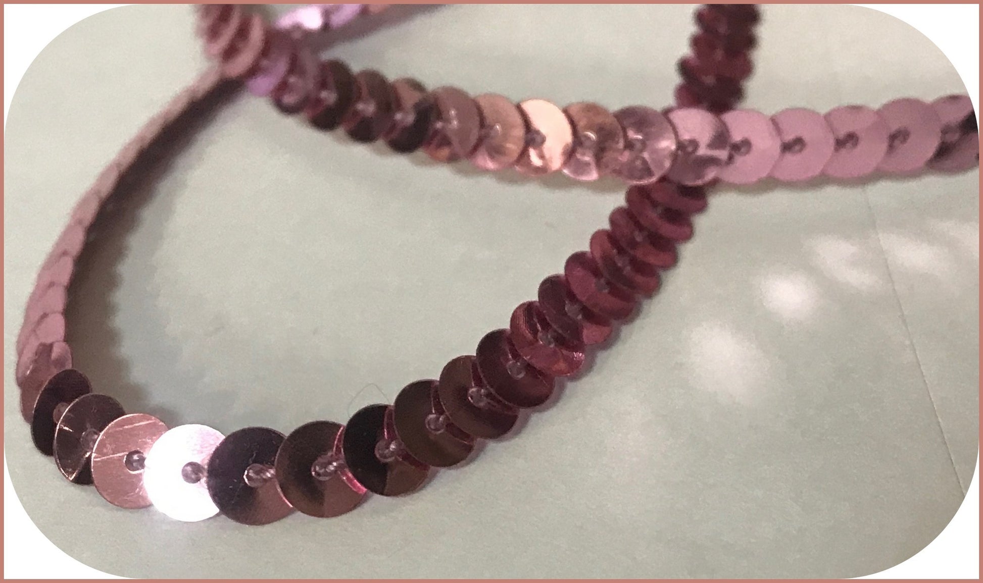 Discover our dusty pink sequin ribbon, dusty pink sequin thread by the meter, a must-have in our haberdashery. Ideal for enhancing all your creations. Available in stock, sold by the meter or piece depending on the type of product.