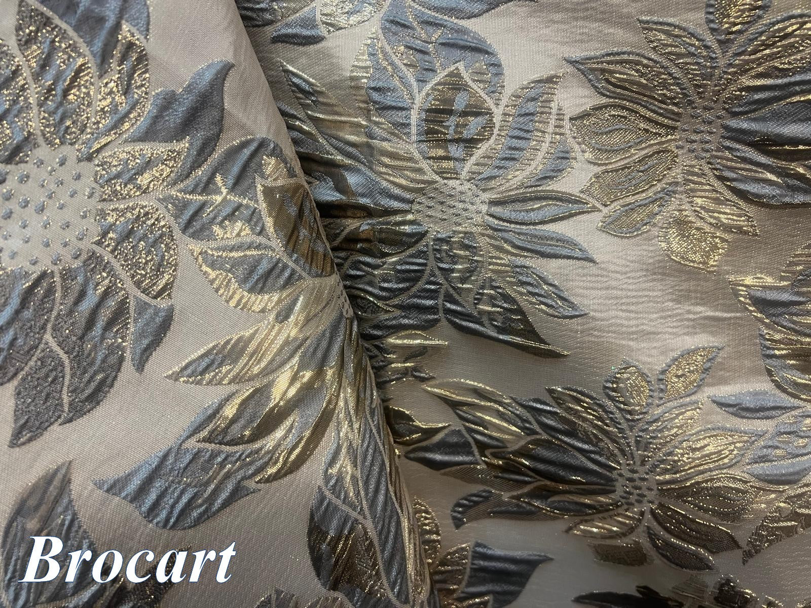 Gold Beige Brocade Fabric with Sublime Flowers in Grey and Gold: Elegance and Refinement