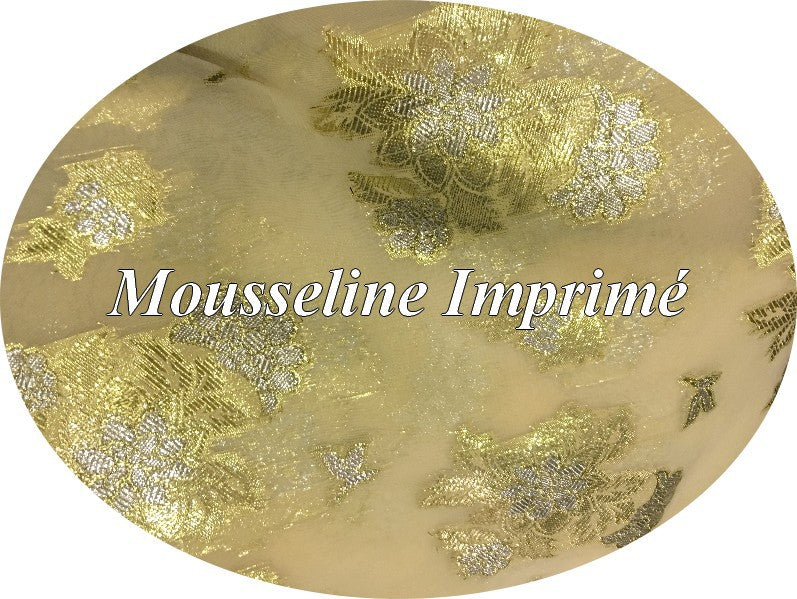Discover our Gold and Silver Lurex Floral Printed Muslin Fabric by the Meter, a must-have in our haberdashery. This fabric is perfect for your fashion, home furnishing, or craft projects. Sold by the meter.