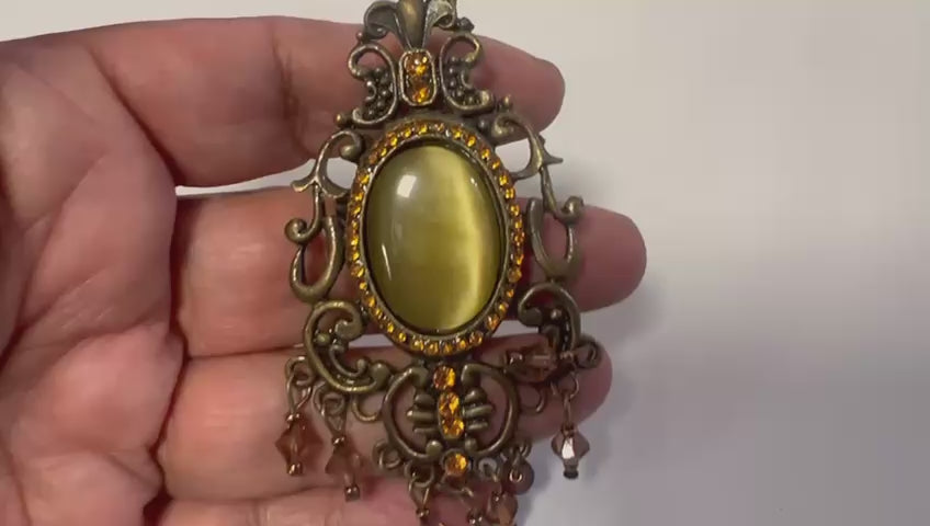 Broche vintage color caqui con diamantes de imitación sobre base de metal bronce para personalización.