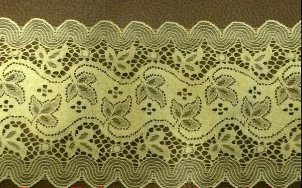 Descubra nuestro encaje de licra verde anís de 12 cm, un básico en nuestra mercería. Este refinado encaje es perfecto para vestidos de novia, acabados elegantes o creaciones de alta costura. Se vende por metro.