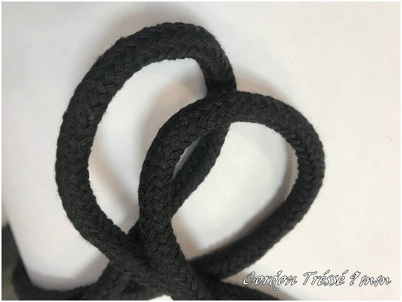 Cordon Coton En 9 mm Tressé Noir En Au Mètre