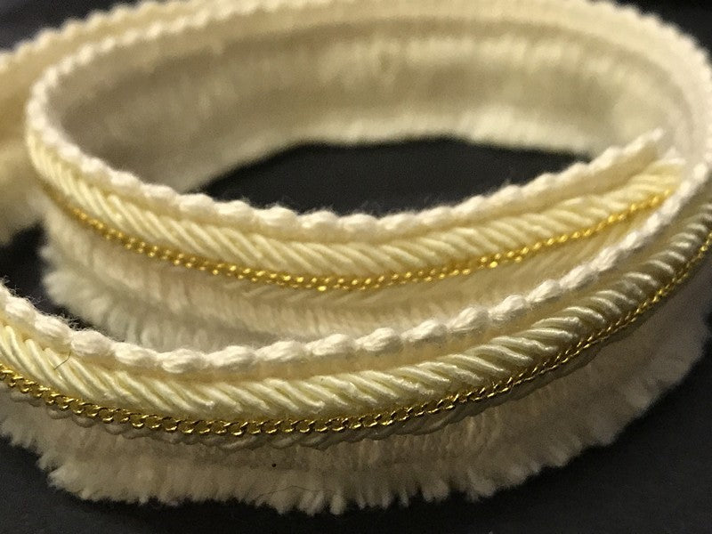 Découvrez notre Galon Au Mètre Ecru Style " Chanel" Orné de Chainette Doré, un incontournable de notre mercerie. Idéal pour sublimer toutes vos créations. Disponible en stock, vendu au mètre ou à la pièce selon le type de produit.
