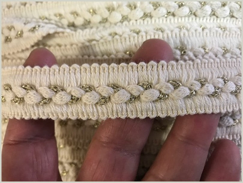Galon Au Mètre Style " Chanel" Ecru au Mètre Entrelassé De Fil Or