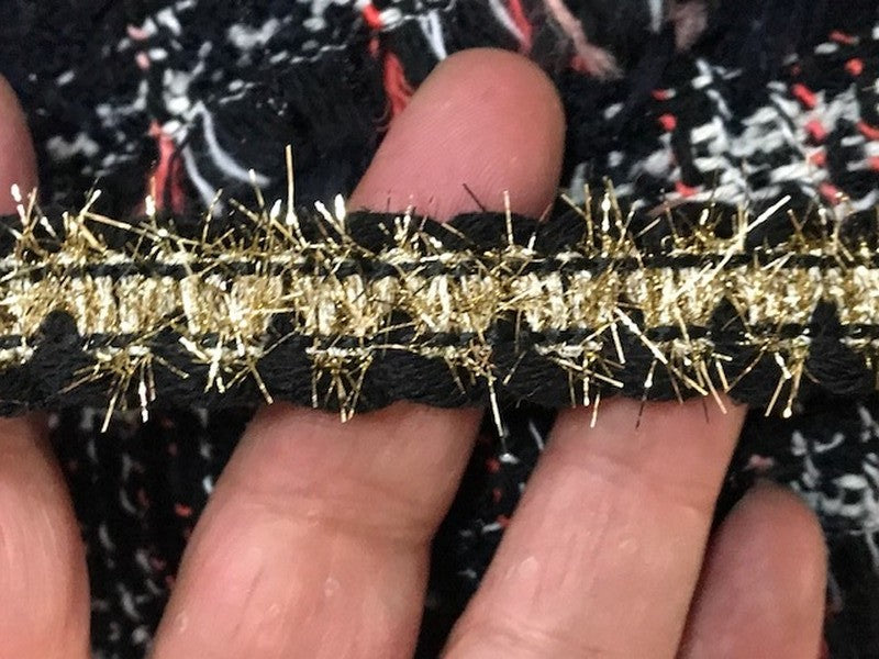 Galon Au Mètre Style " Chanel" Noir au Mètre Orné de Fil Doré