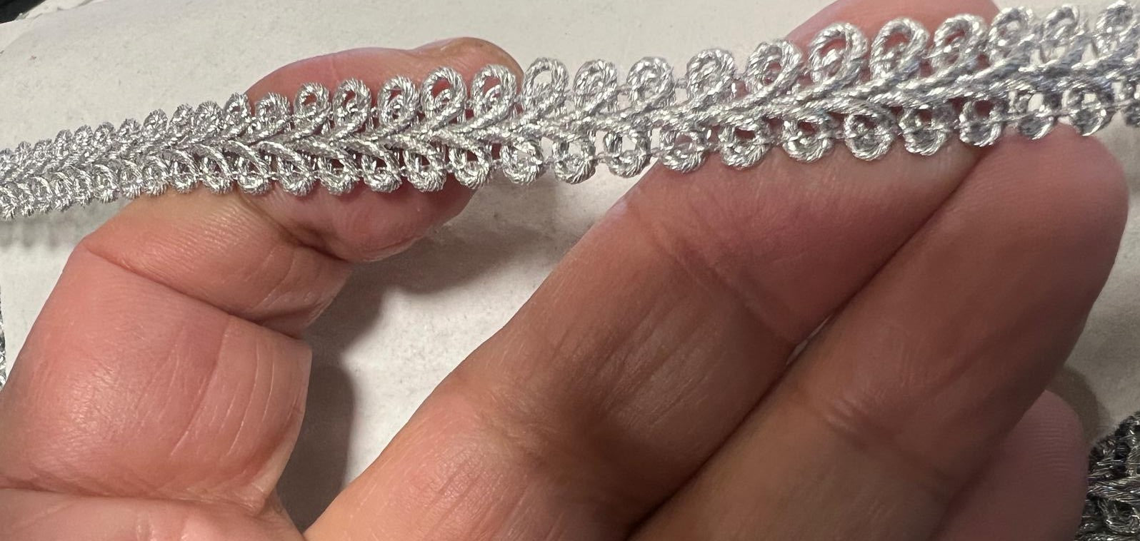 Galon Style "Chanel" Argenté - Raffinement et Haute Couture. Article vendu à la pièce. Utilisé pour décorer vestes, jupes, ou accessoires couture.