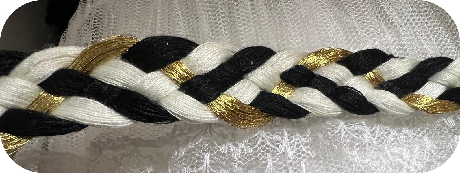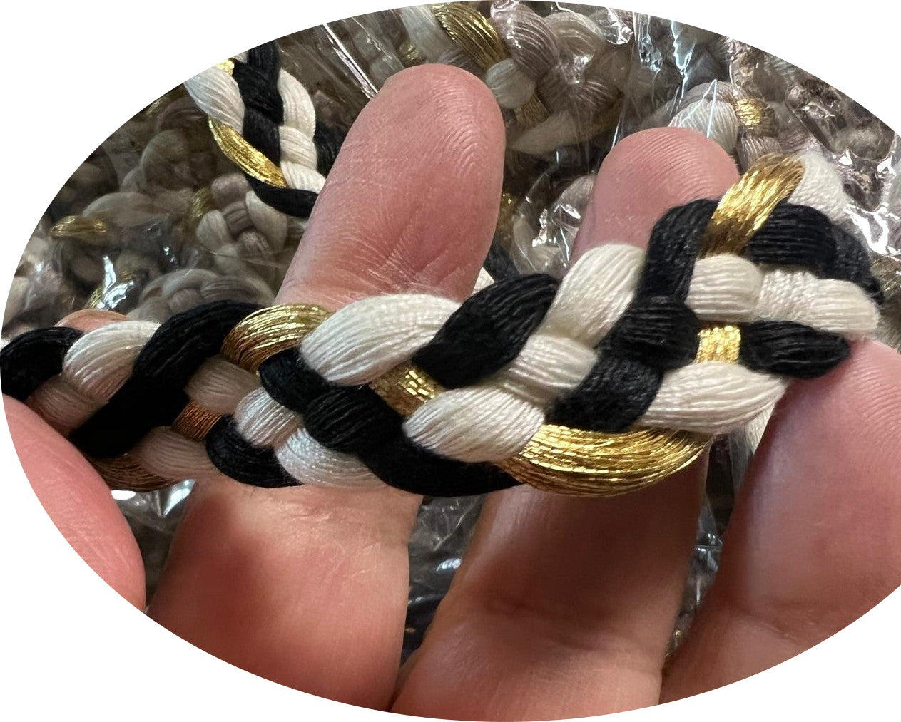 🇬🇧 ENGLISH - Tricolor Braided Trim 15mm Black White Gold