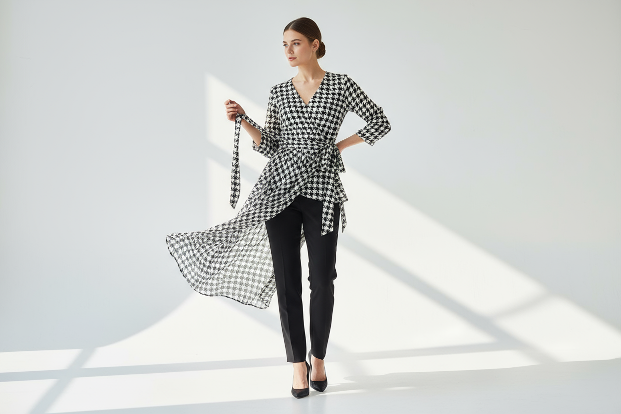Mousseline de soie pied-de-poule – Élégance légère et graphique