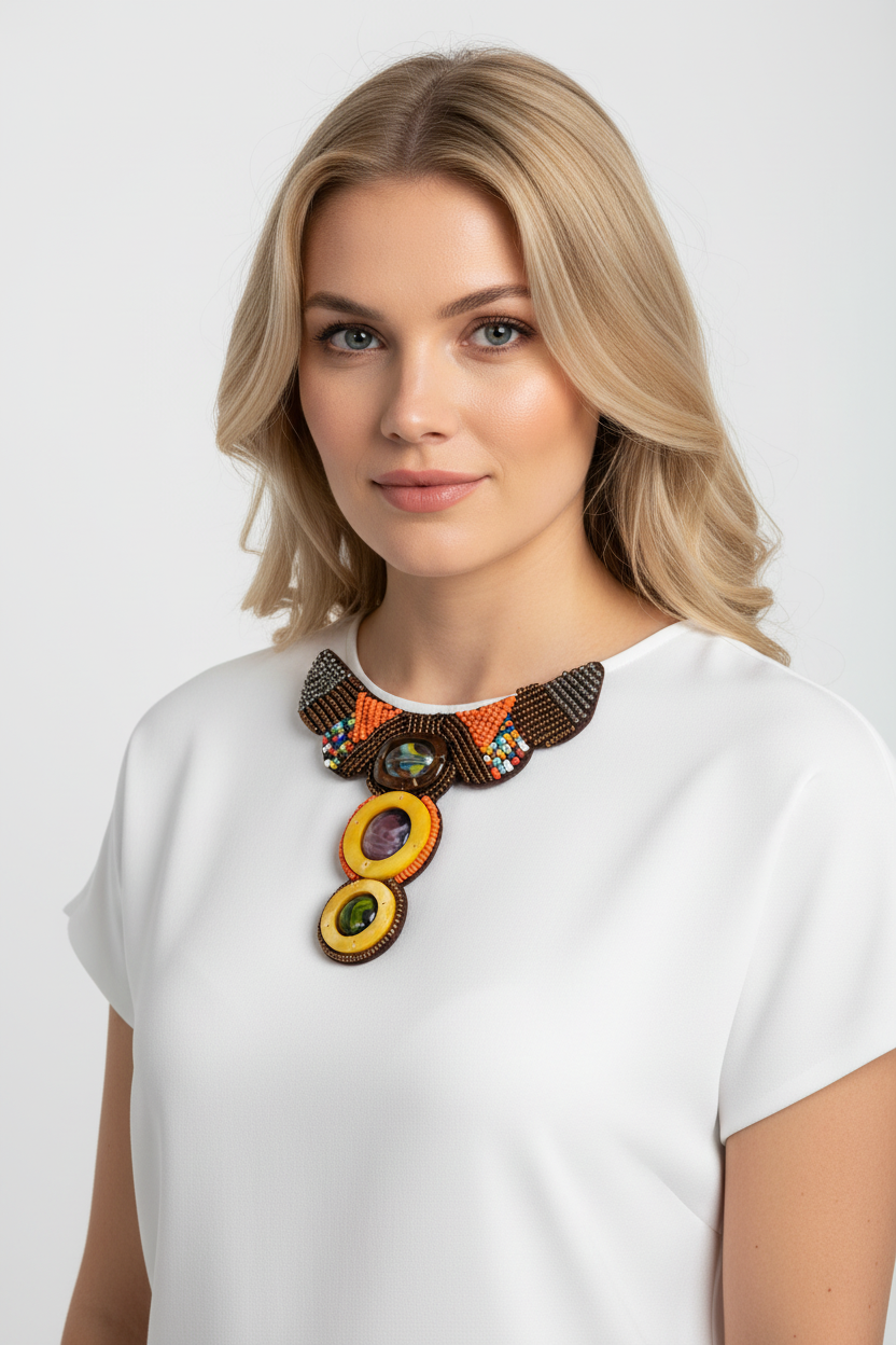 - Mode : Collier ethnique, broche, ornement de veste ou manteau