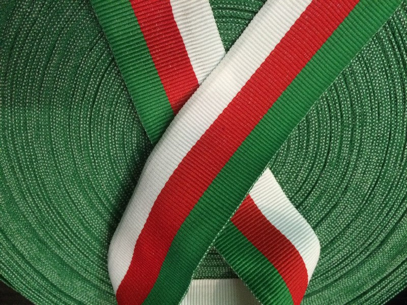 Ruban Au Mètre En Gros Grain Blanc Rouge Vert En 35 mm.