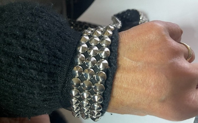 Ruban Clouté Argenté au mètre sur fond en tulle noir Au Mètre A Coudre Pour Ceintures Loisirs Créatifs Et Customisations.