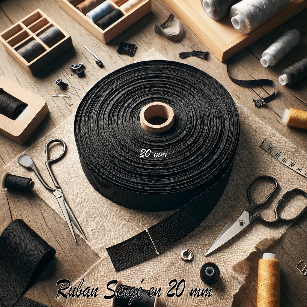 Ruban Sergé Noir Coton Au Mètre En 20 mm A Coudre Pour Loisirs Créatifs Et Décorations.